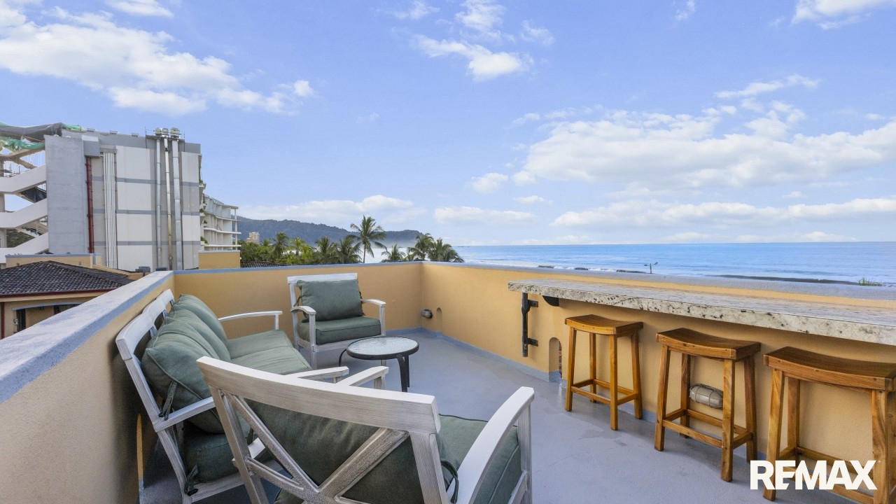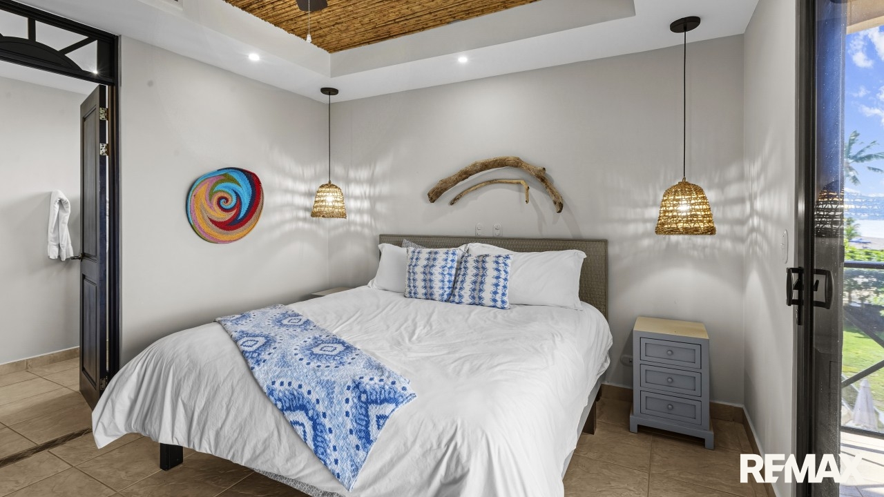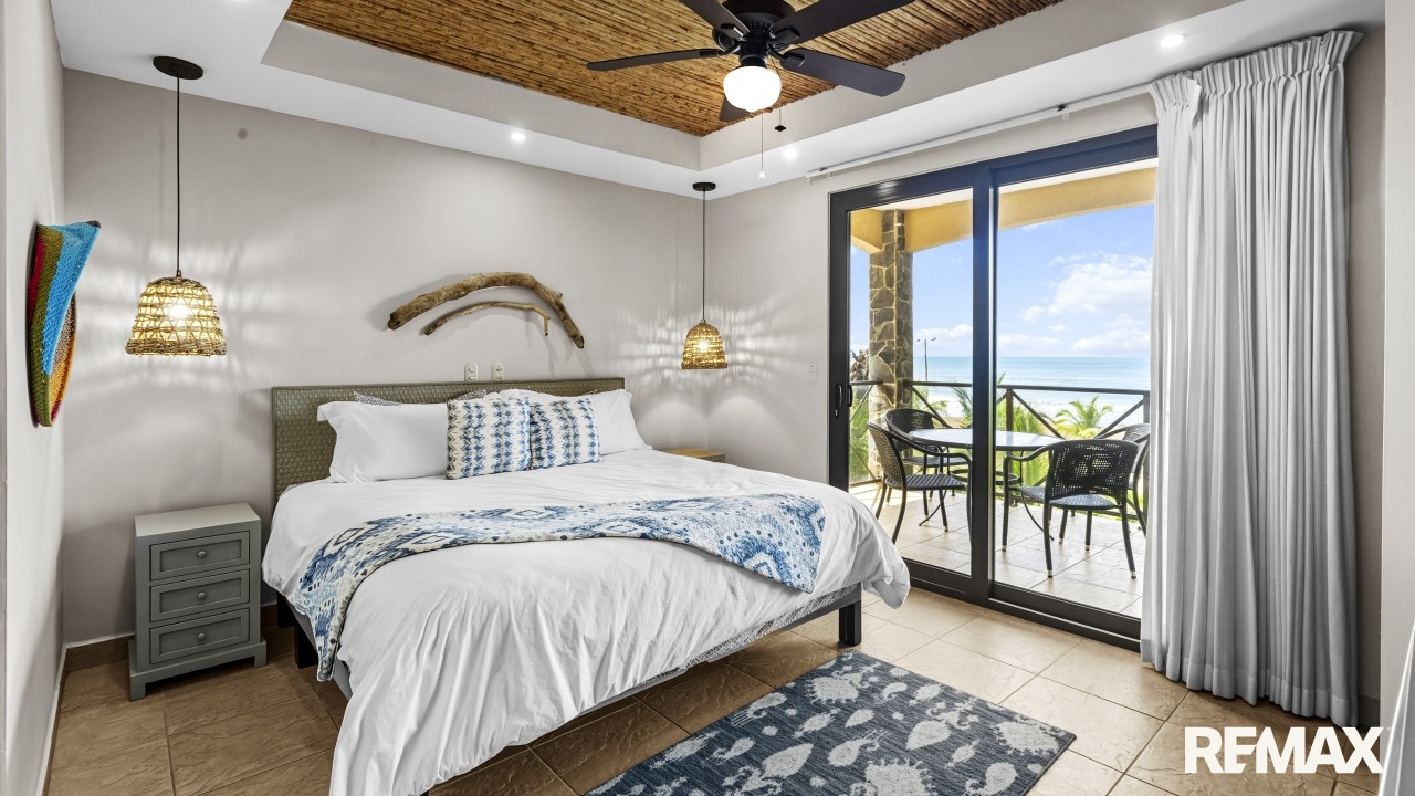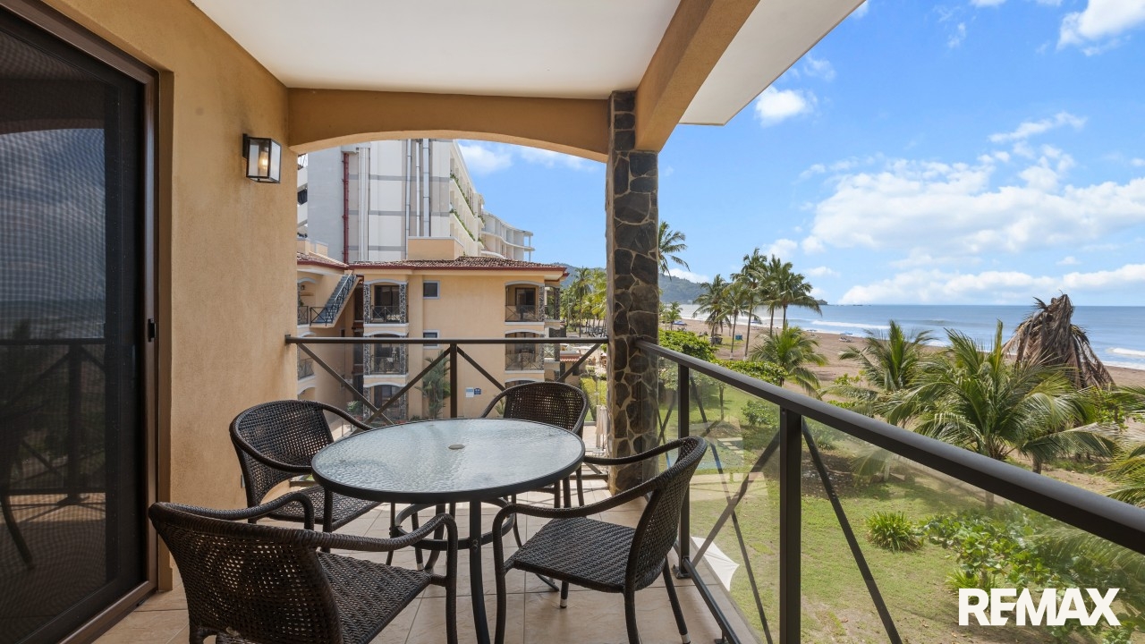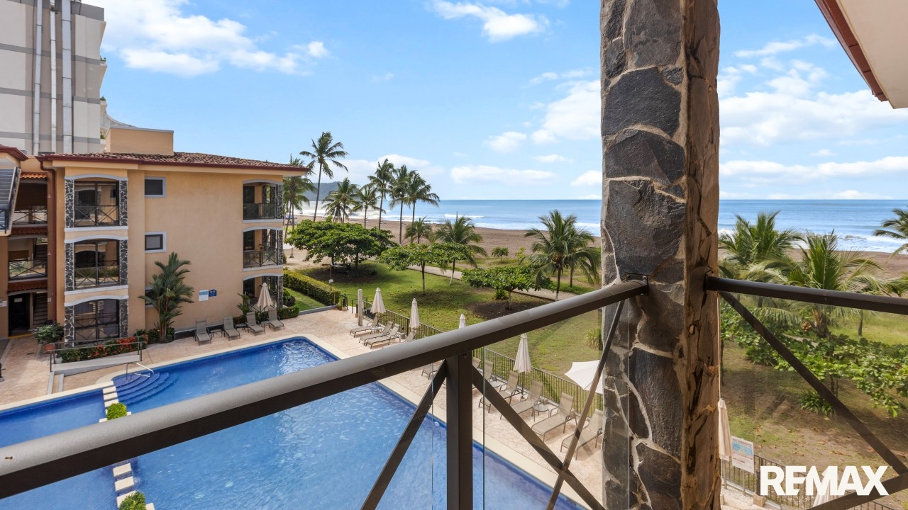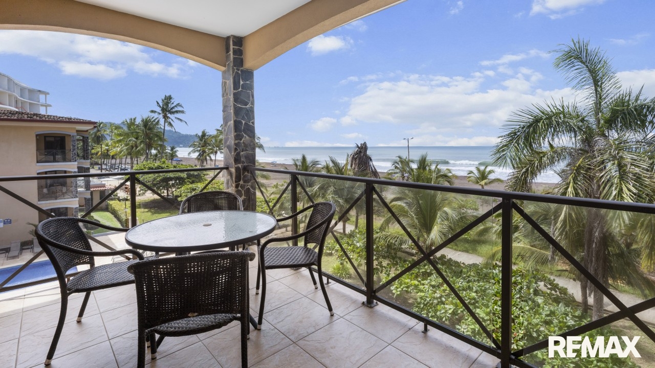 Wake up to the sound of waves and panoramic ocean views in this direct oceanfront penthouse at Bahia Encantada A3, located on the peaceful north end of Jaco Beach, Costa Rica. This exceptional 2-bedroom, 2-bathroom condo offers 1,055 sq. ft. of luxurious living space, including a rare private rooftop terrace—perfect for sunset cocktails and entertaining under the stars.