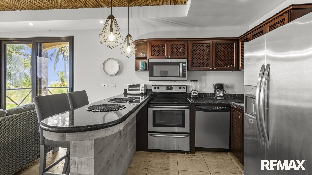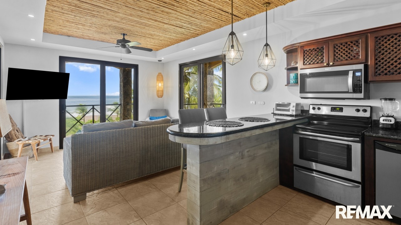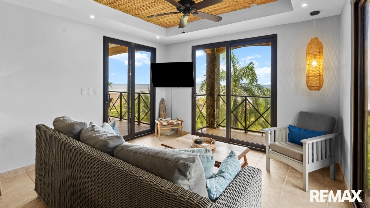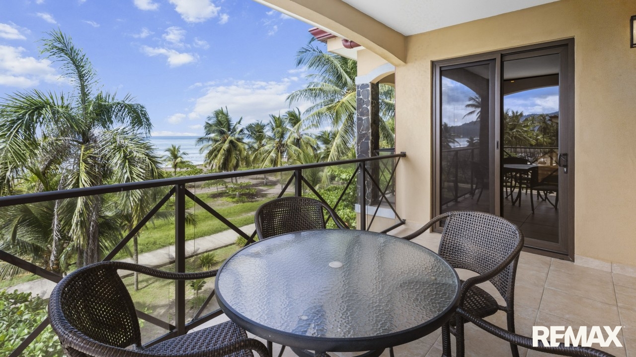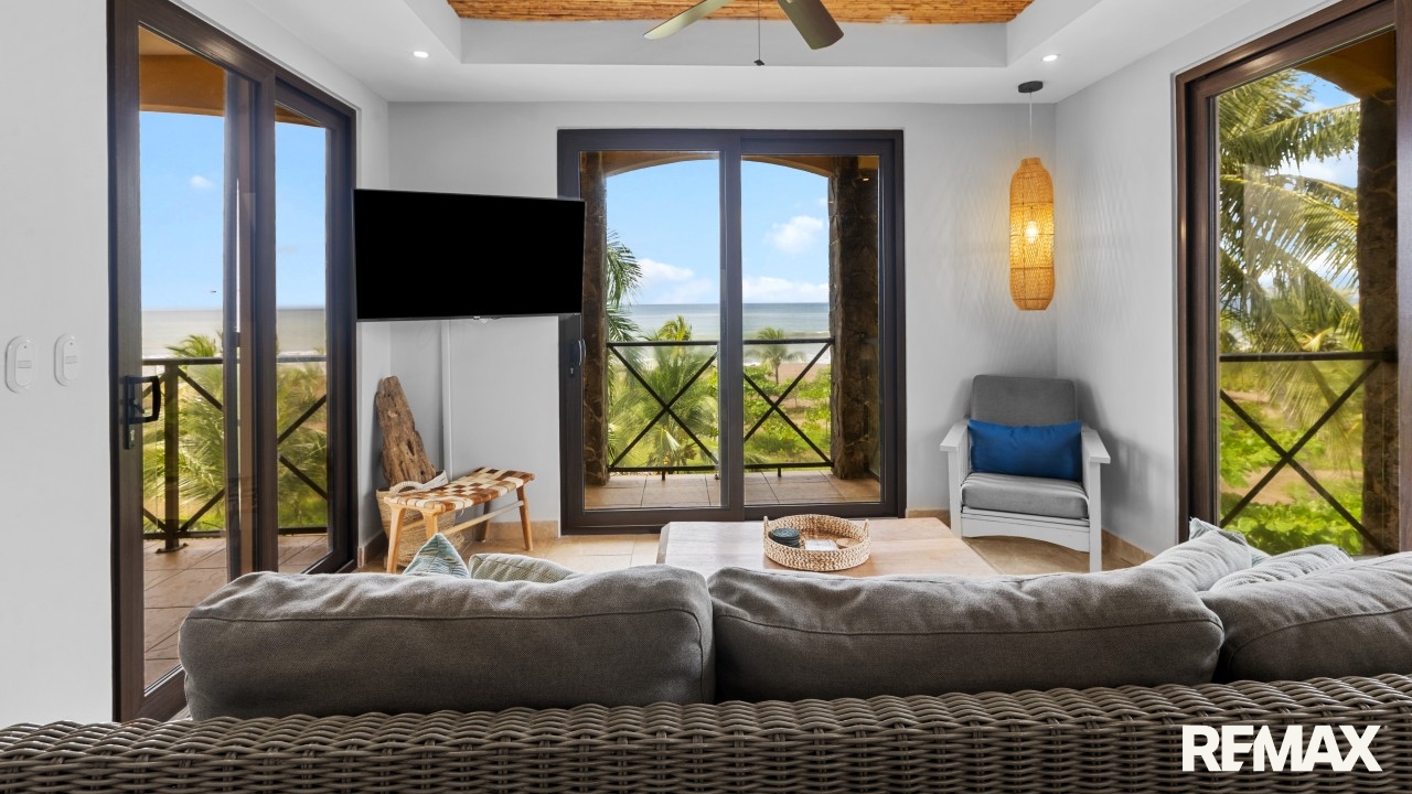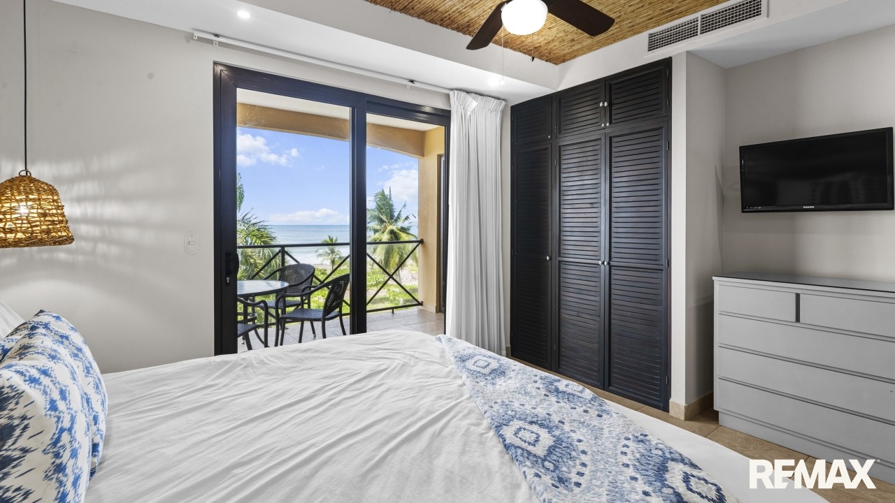 Wake up to the sound of waves and panoramic ocean views in this direct oceanfront penthouse at Bahia Encantada A3, located on the peaceful north end of Jaco Beach, Costa Rica. This exceptional 2-bedroom, 2-bathroom condo offers 1,055 sq. ft. of luxurious living space, including a rare private rooftop terrace—perfect for sunset cocktails and entertaining under the stars.