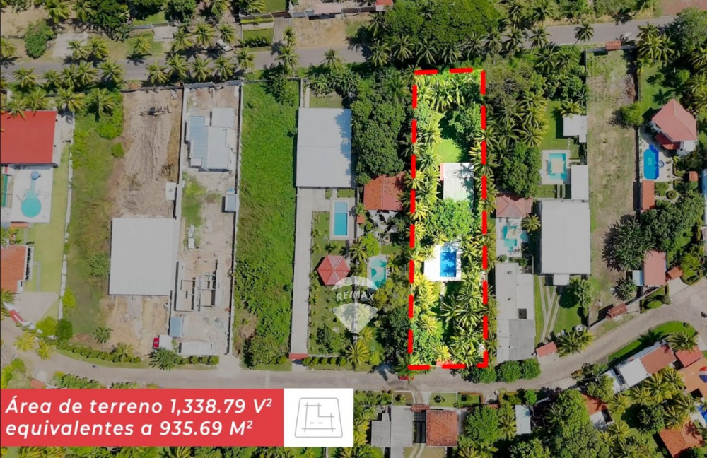 The lot measures 1,338.79 varas cuadradas, equivalent to 935.69 square meters, with a 17-meter frontage and a depth of 78 meters.